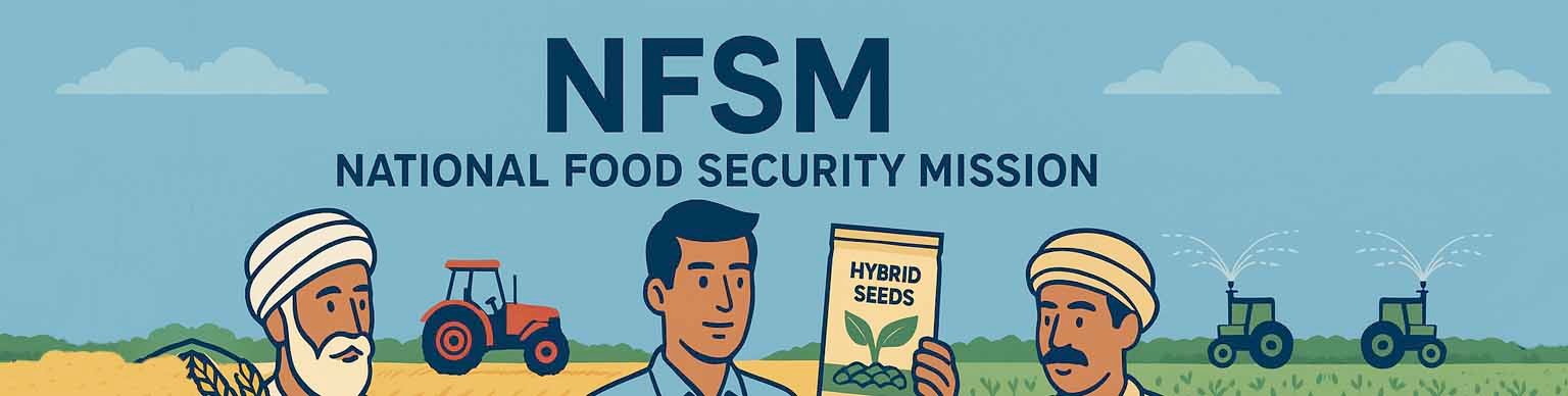 The National Food Security Mission (NFSM) was launched in 2007 with the aim to increase the production of rice, wheat, pulses, coarse cereals, and commercial crops through area expansion, productivity improvement, and resource efficiency.